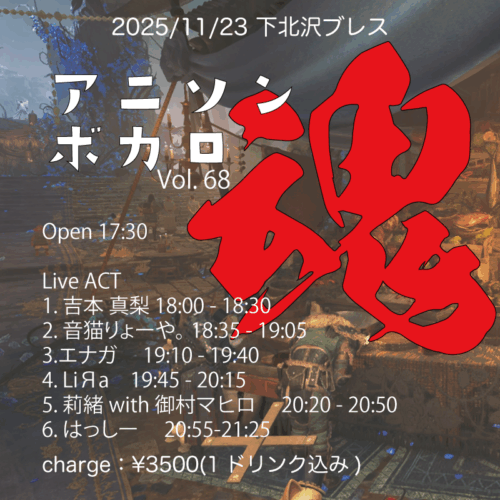 charge:¥3500、1ドリンク込Open18:00 / Start18:30ACT1.…