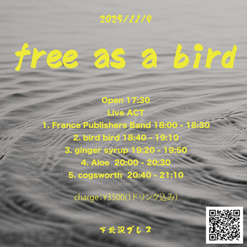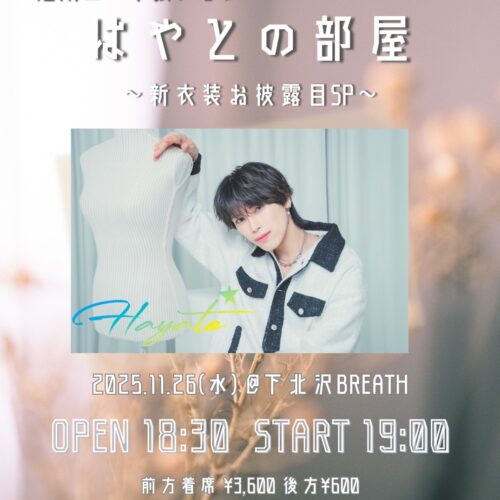 Open 17:30Charge 1drink込み ¥3500 配信チケット ¥2900…