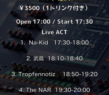 ・開始時間より前は音響準備などの都合によりお入り頂けませんので予めご了承ください。