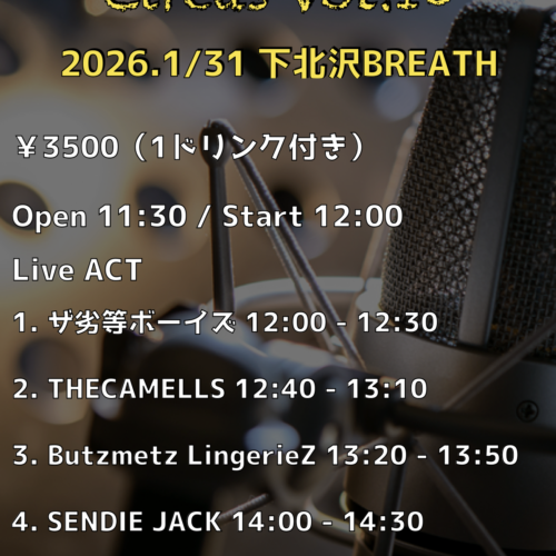 Open 17:30 前売り 3500 / 当日 ¥3800 (別途1drink ¥600)配信 ¥3500…