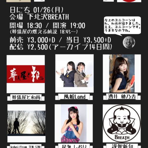 Open 11:30Charge ¥3500(1Drink込み)配信 ¥2900 …