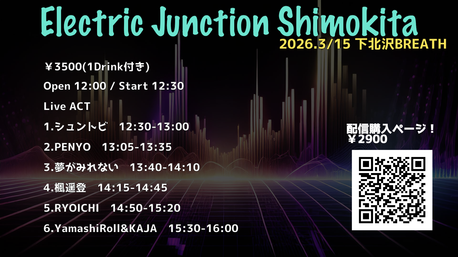 ☀️ 昼 ☀️ Electric Junction Shimokita 3月 15 Sun 2026 LIVE EVENT 配信チケット¥2900 購入ページはこちら! 前のスケジュール 次のスケジュール