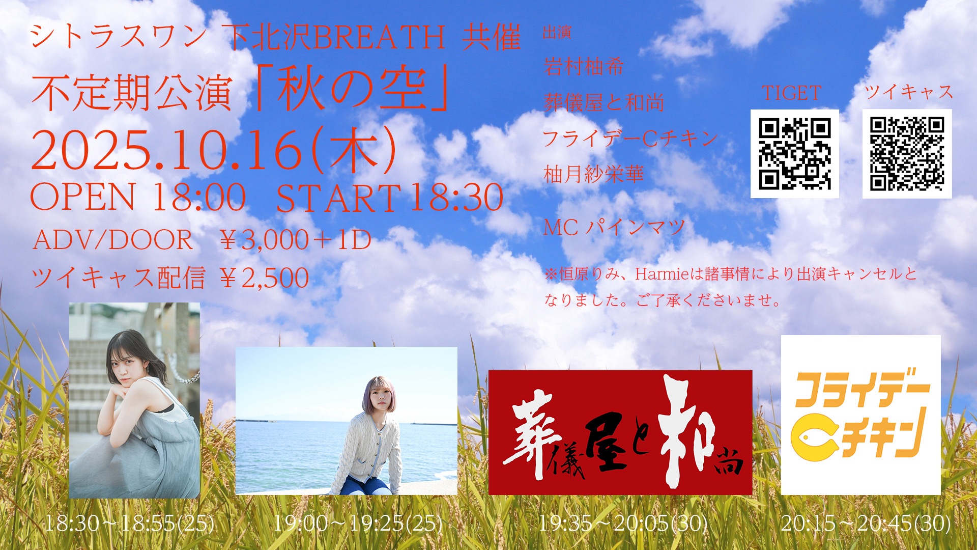 Charge ¥3000 + 1Drink ¥600 / 配信チケット ¥2500