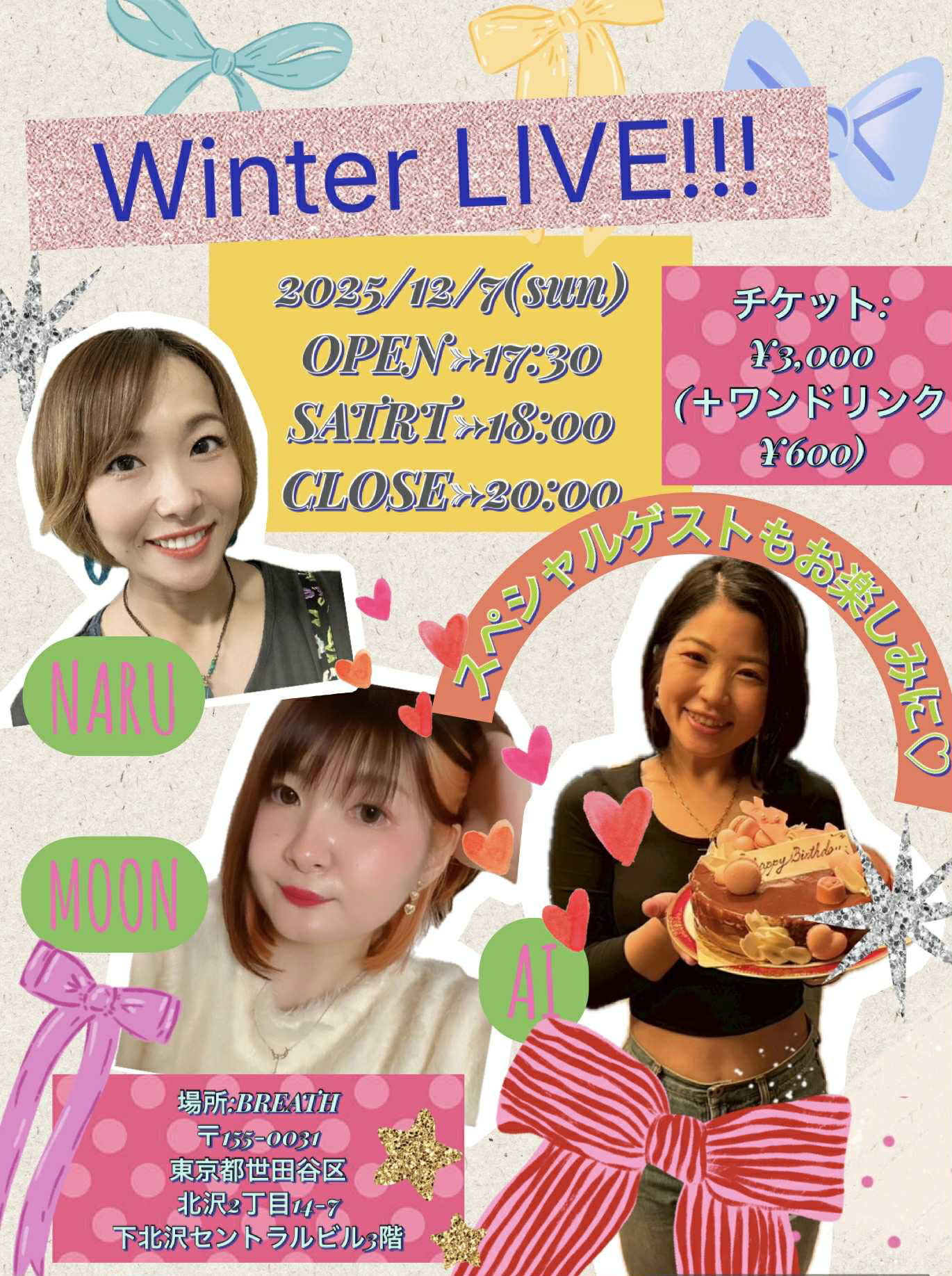 ☽ 夜 ☽ Winter LIVE !!! 12月 7 Sun 2025 LIVE EVENT Open 17:30 Charbe ¥3000 + 1Drink 600 前のスケジュール 次のスケジュール