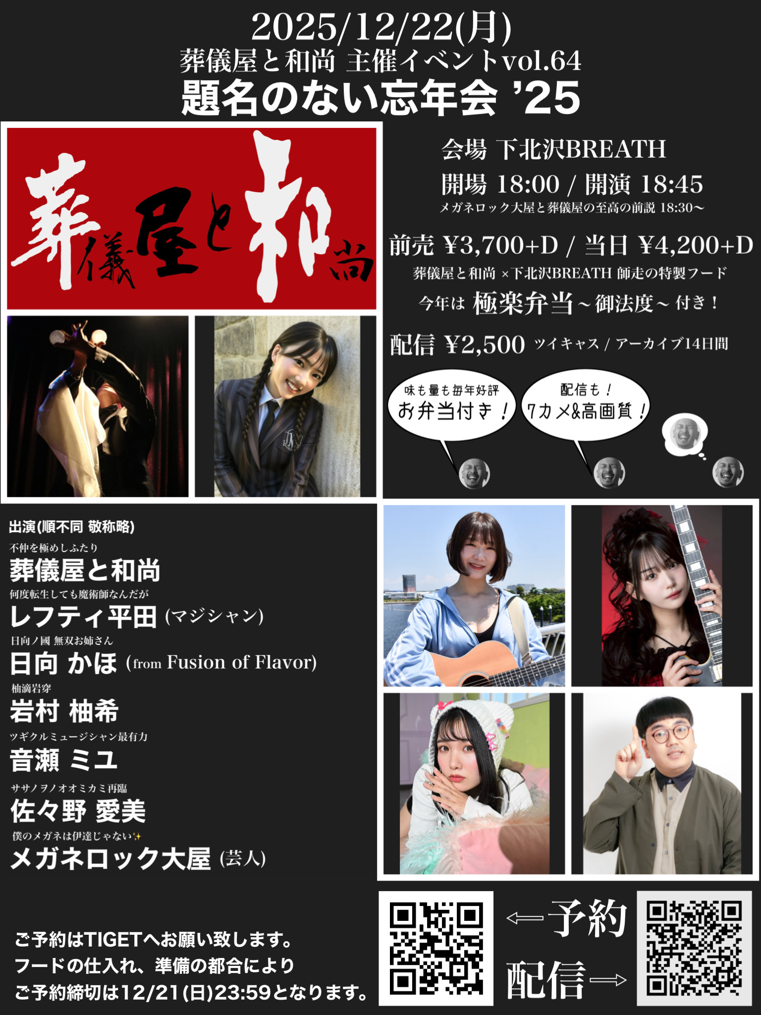 葬儀屋と和尚主催イベントvol.64 「題名のない忘年会」 12月 22 Mon 2025 LIVE EVENT 配信チケット¥2500 購入ページはこちら! 予約用ページ こちら! 前のスケジュール 次のスケジュール