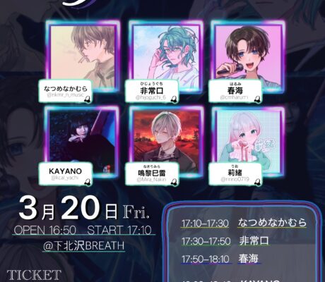 どうしても配信 NG の場合はお申し付けください。 - リハーサルから終了までの時間枠はおおよそ「昼の部」10:00~15:30の間、「夜の部」16:00~ 22:30 の間です。基本的には出演順はご指定できませんので、この時間枠内で、どの順番でも問題ないかご確認の上、エントリーお願いします。